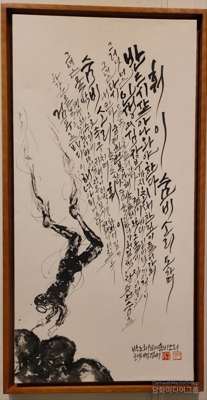 This description is particularly fitting for the works of calligrapher and painter Yoo Hyeon Byeong. Three distinct series by Yoo are presented in this exhibition. His ho (號)—artistic sobriquet—"Bamgugyeong" can be loosely translated into English as "One Who Gazes at the Night)." Each series captures a different dialogue between tradition, art, and the human spirit.