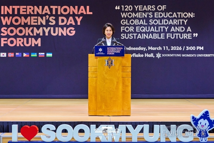 First Lady Kim Hye Kyung attended the "2026 World Women's Day Commemorative Sookmyung International Forum" held on the afternoon of March 11 at Sookmyung Women's University, joining ambassadors accredited to Korea, women leaders from home and abroad, and members of the university community in celebrating the occasion. The forum was organized under the theme "120 Years of Women's Education: Global Solidarity Toward Equality and a Sustainable Future," and provided a platform for discussing the role of women's education in advancing global equality, sustainability, and inclusive digital transformation.